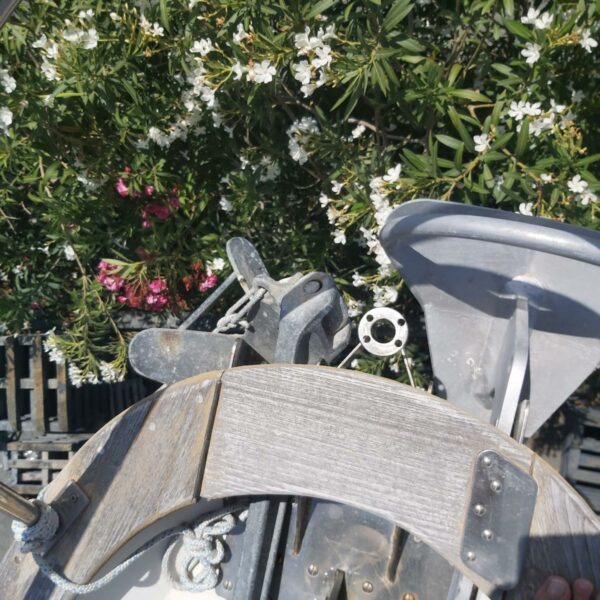 Ancla Rocna de 25 kg y ancla de respeto Delta de 20 kg, garantizando una sujeción segura en diversas condiciones de mar.